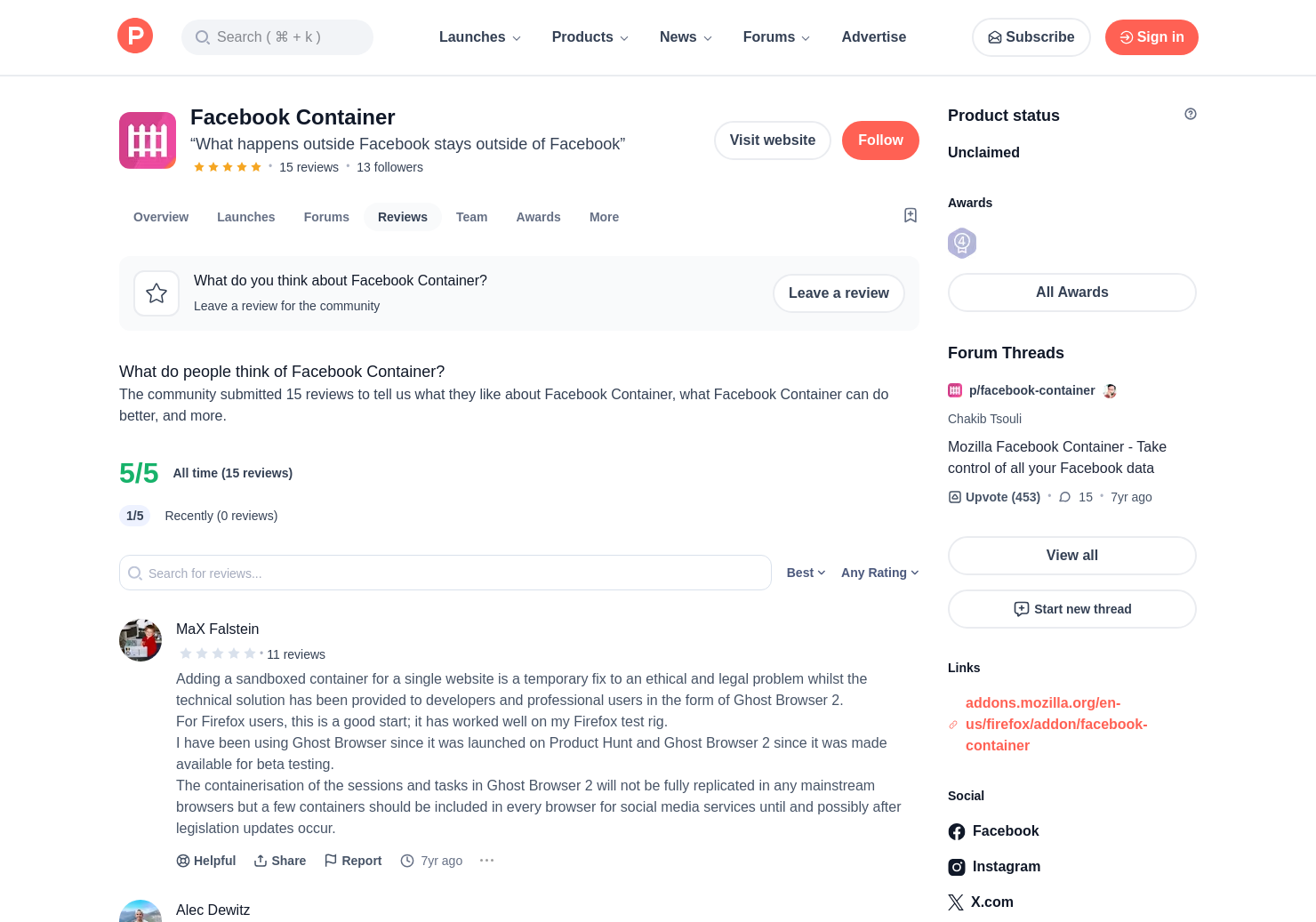 Adding a sandboxed container for a single website is a temporary fix to an ethical and legal problem whilst the technical solution has been provided to developers and professional users in the form of ghost browser 2.